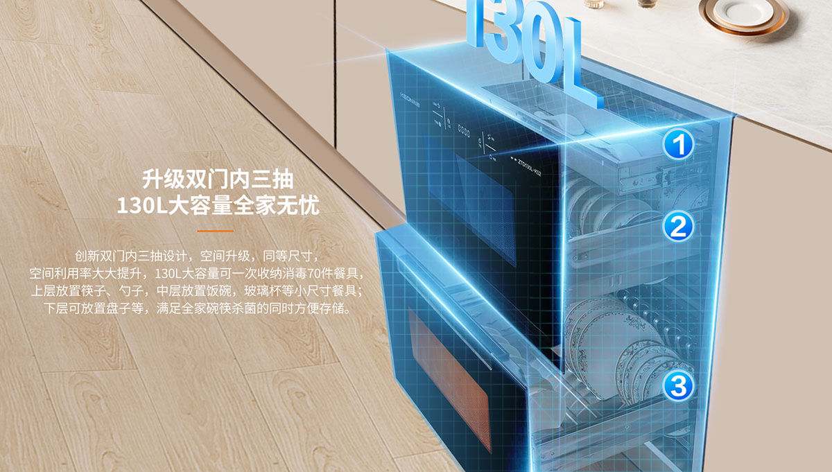 • 分層分控結構,實現(xiàn)餐具分類存放
