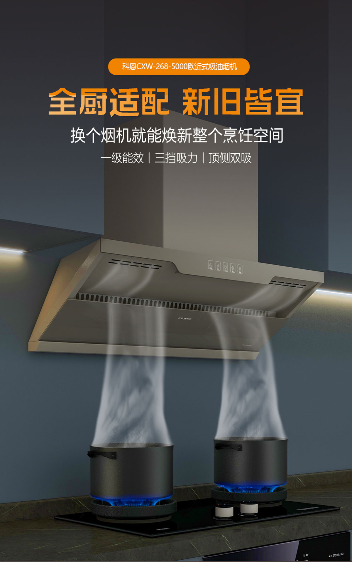 • 黃金控煙勁吸設計,攏煙面積增加50%,油煙0逃逸