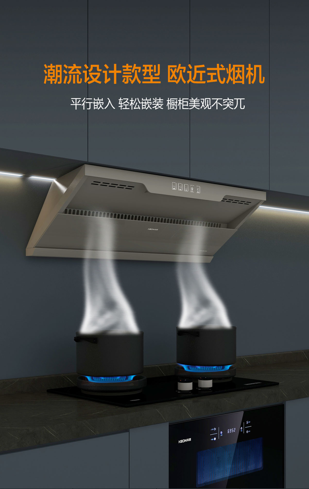 • 歐近式煙機,平行嵌入,輕松嵌裝,櫥柜美觀不突兀