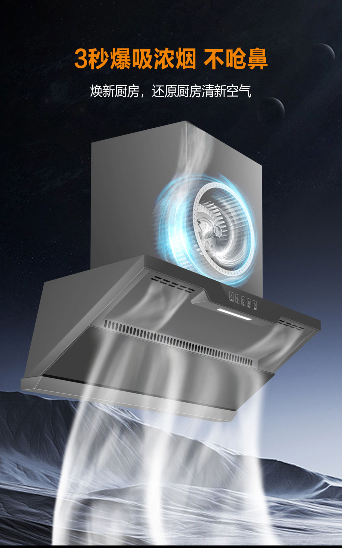 • 颶風吸力,瞬吸濃煙,煥新廚房清新空氣