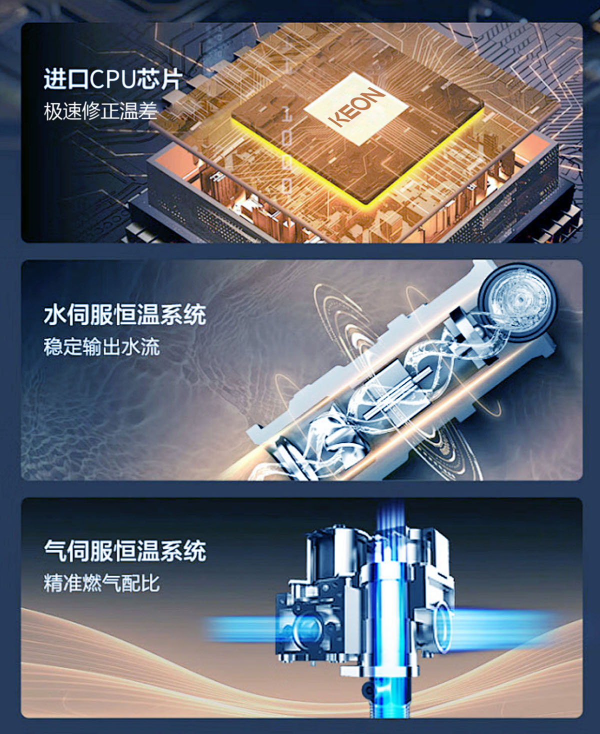 • 極速智能恒溫技術(shù),精確的燃?xì)獗壤y恒溫調(diào)節(jié)系統(tǒng)。