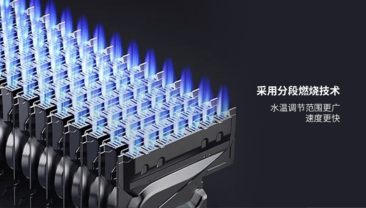 • 采⽤分段燃燒技術(shù),⽔溫調(diào)節(jié)范圍更廣,速度更快