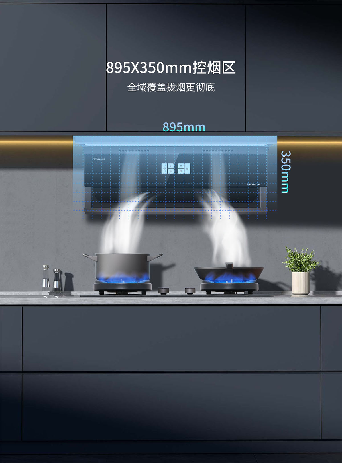 • 895X350mm控?zé)焻^(qū),全域覆蓋攏煙更徹底