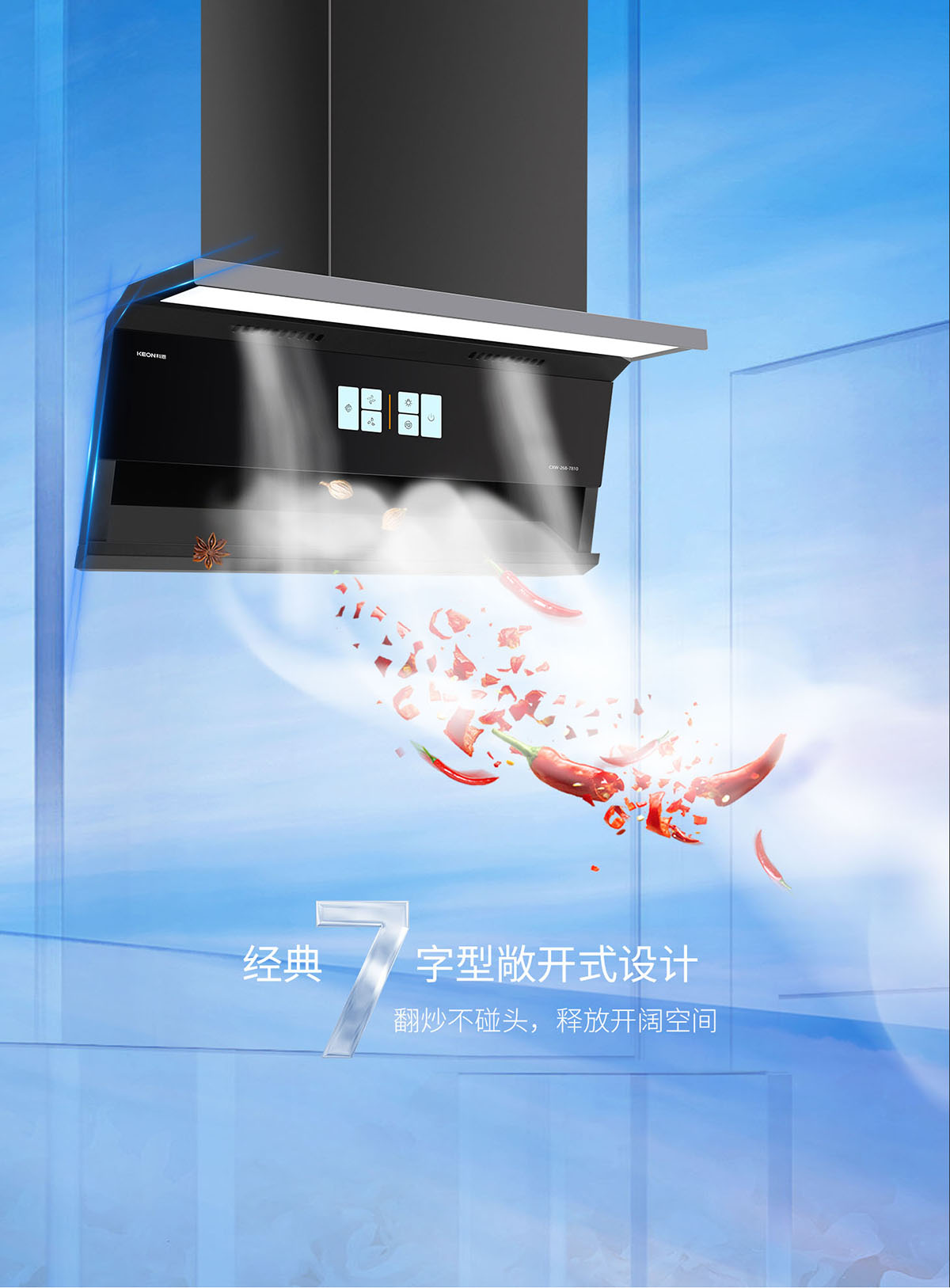• 經(jīng)典7字型敞開(kāi)式設(shè)計(jì),釋放空間,翻炒不碰頭