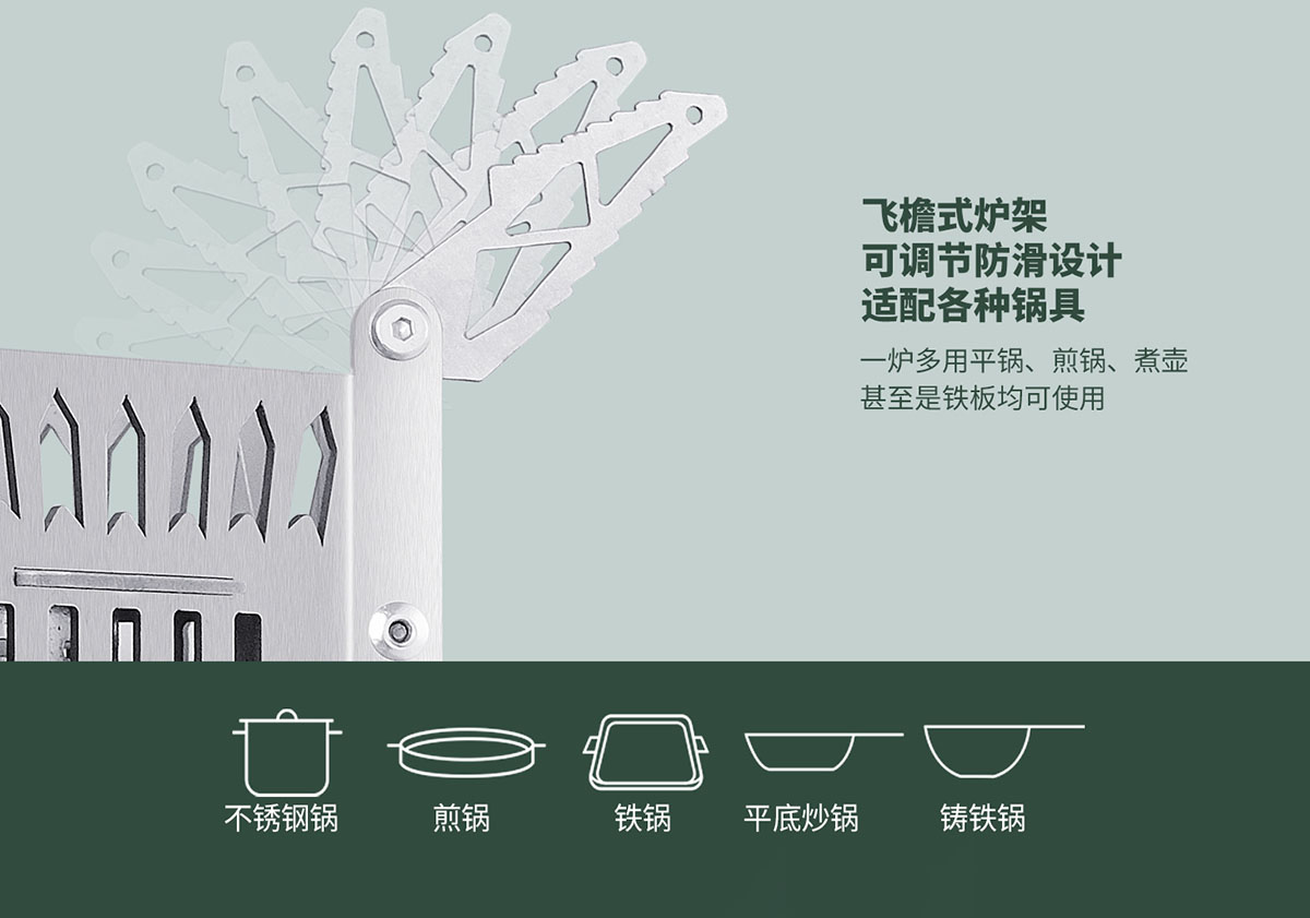 • 飛檐式可調(diào)節(jié)防滑鍋架,適配各種鍋具