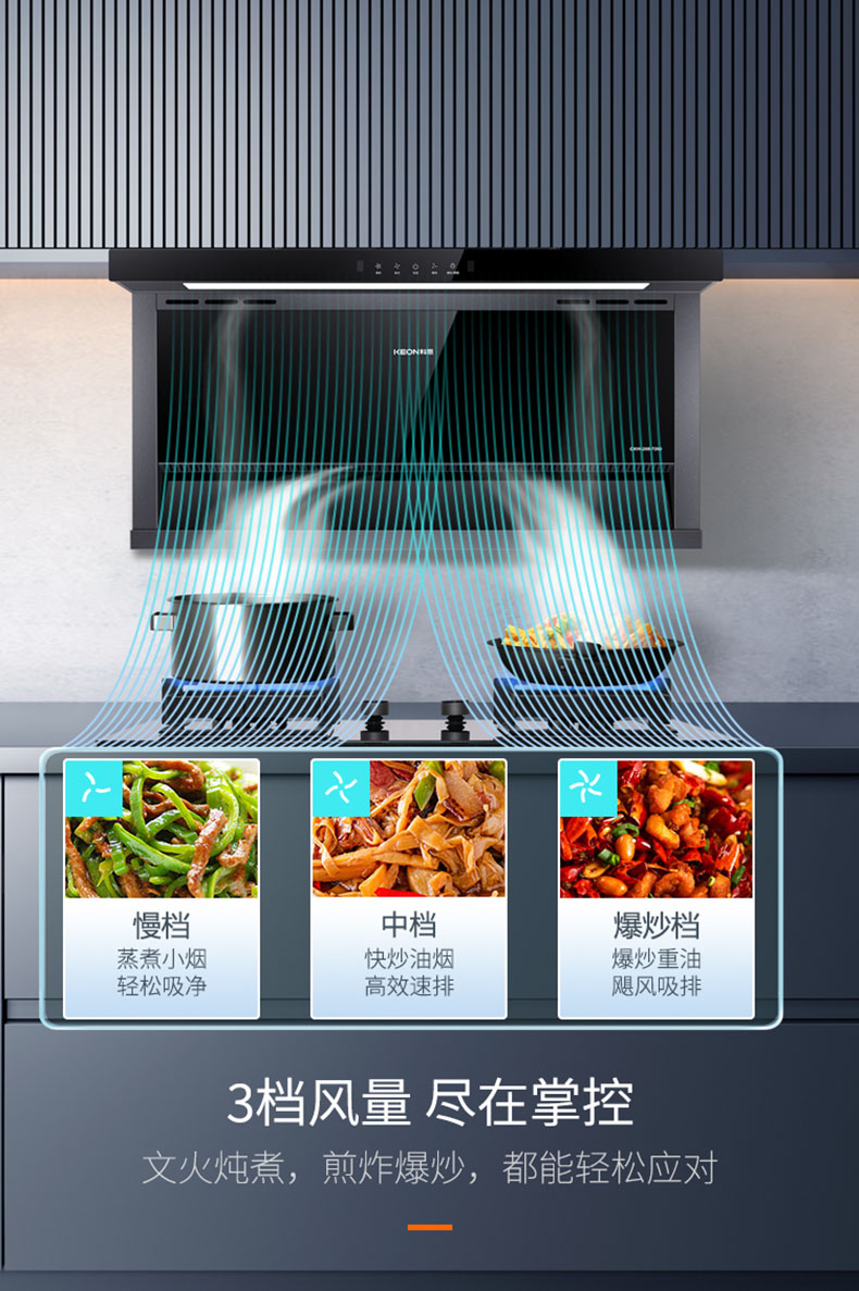 - 3檔風(fēng)量,盡在掌控。無(wú)論文火燉煮,煎炒小炒還是中式爆炒,都能輕松應(yīng)對(duì)。