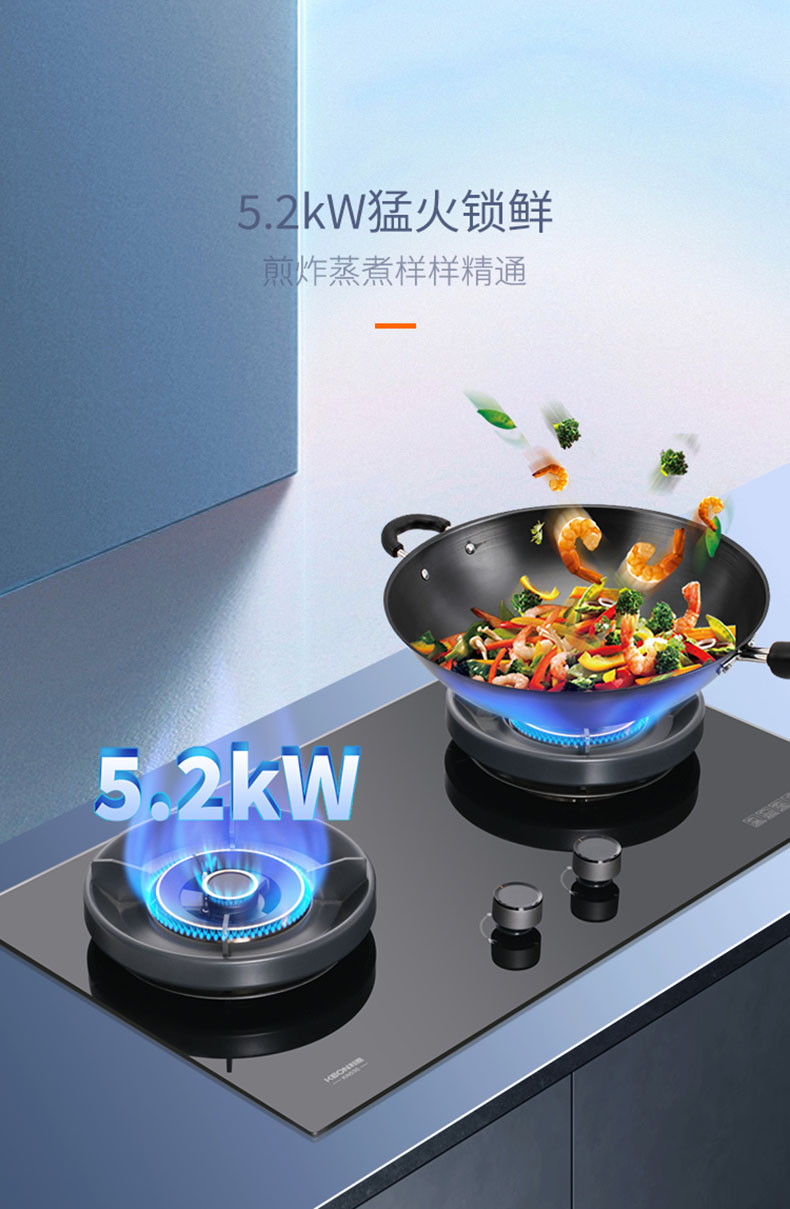 - 5.2KW猛火爆炒鍋氣足,激發(fā)食材色香味