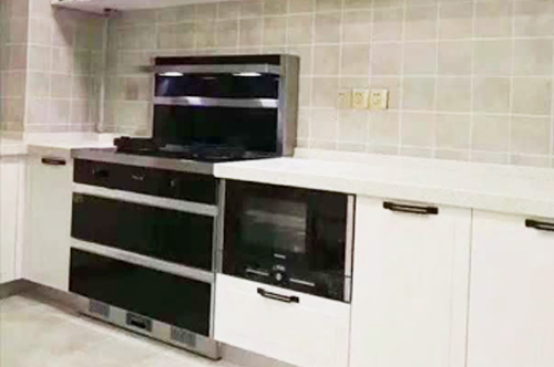 科恩山東經(jīng)銷商提供的D101集成灶和蒸箱廚房實(shí)景